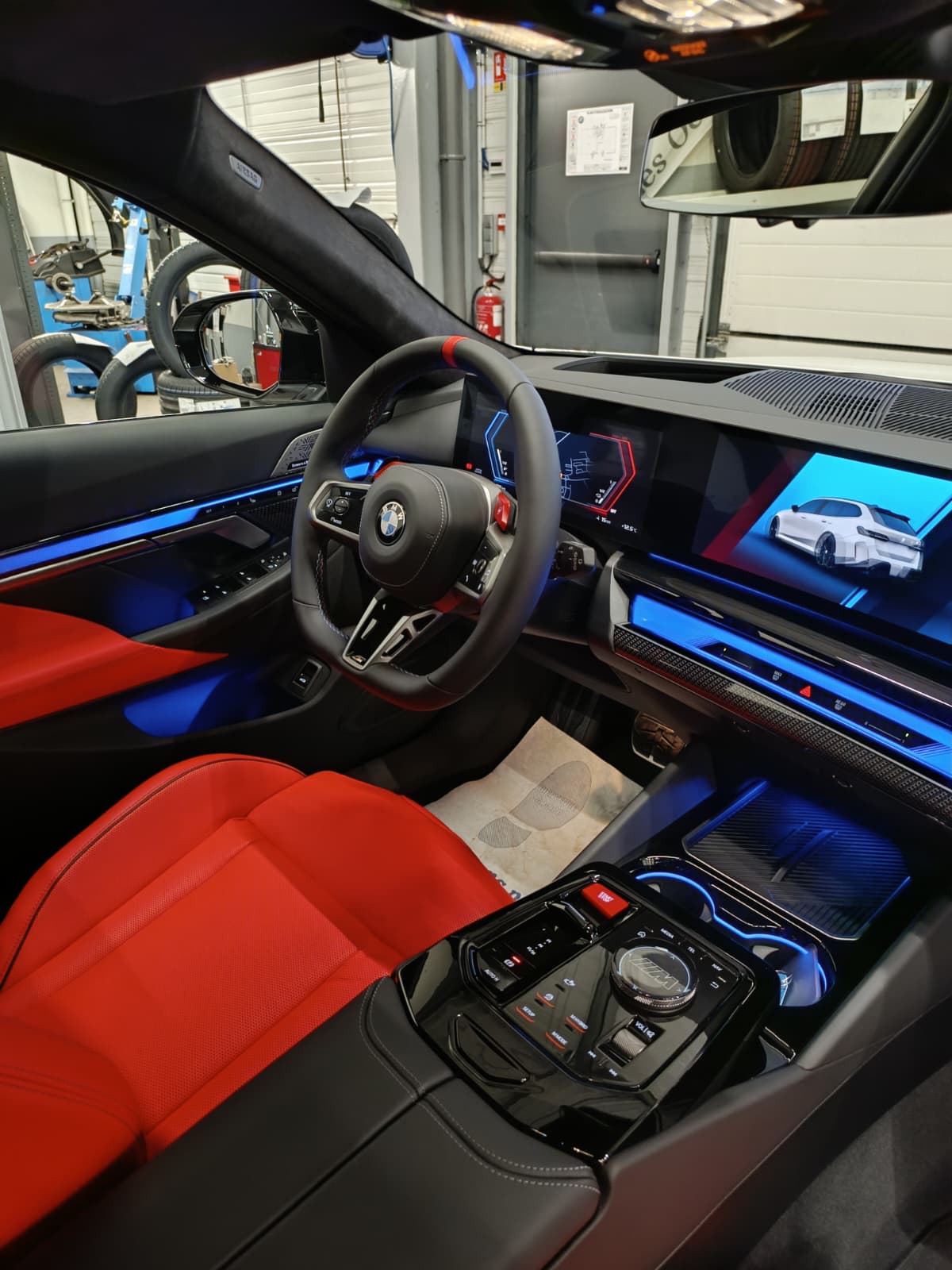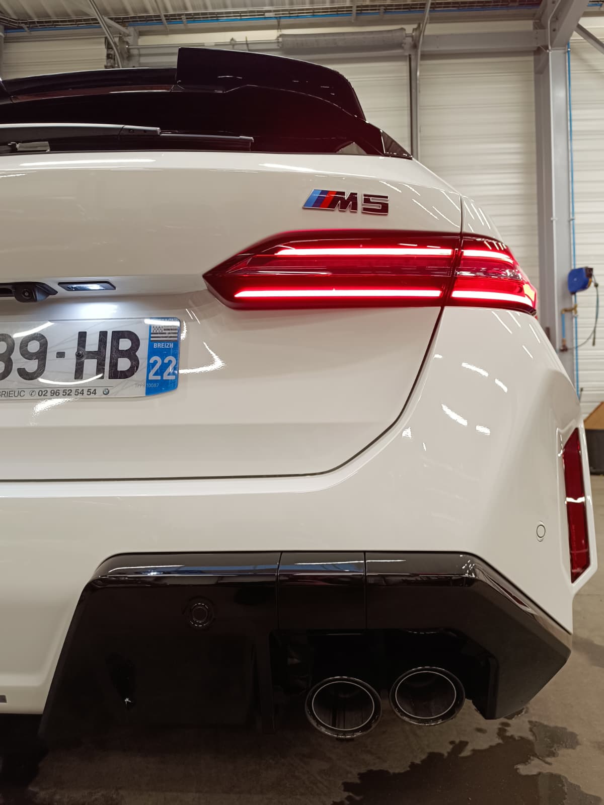 Préparation d'une BMW M5 Touring pour être prête à la présentation et à la vente.